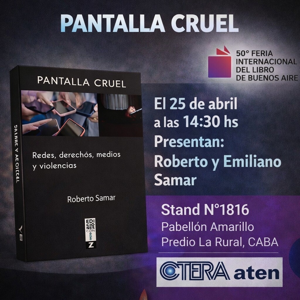 Presentación del libro «Pantalla cruel», de Roberto Samar el sábado 25/04 en la Feria del libro